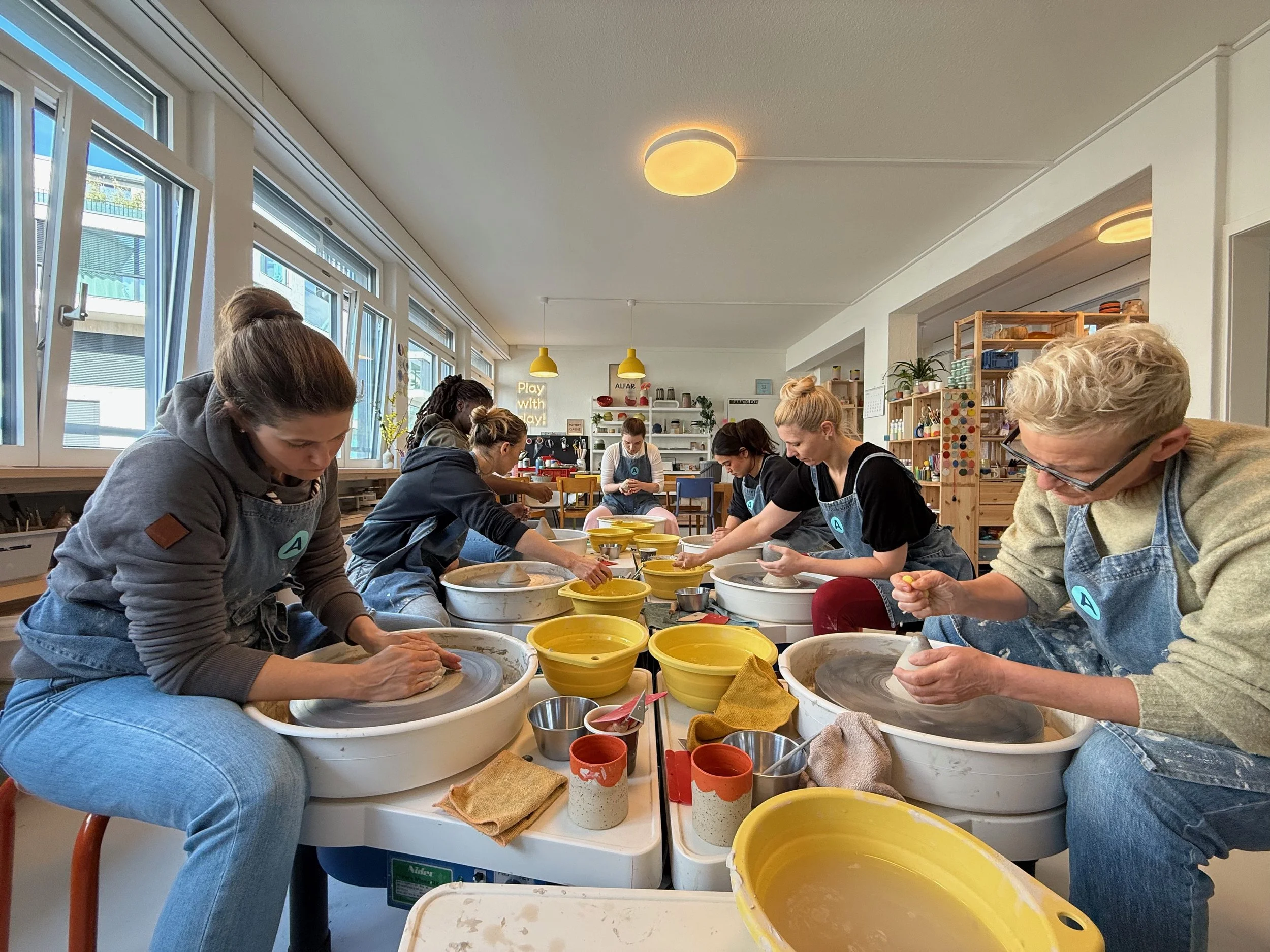 Gemeinsam arbeiten wir an der Drehscheibe und zeigen dir Schritt für Schritt, wie aus einem Stück Ton erste Gefässe entstehen. Mit Unterstützung unseres Teams kannst du deine ersten eigenen Keramikstücke drehen – ganz ohne Vorkenntnisse.